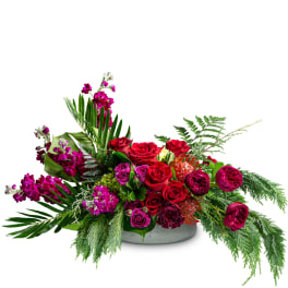 Price: $179.95 12 Elegant red roses with a lush combination of greenery in a clear glass container Product Tags: Next-day Delivery